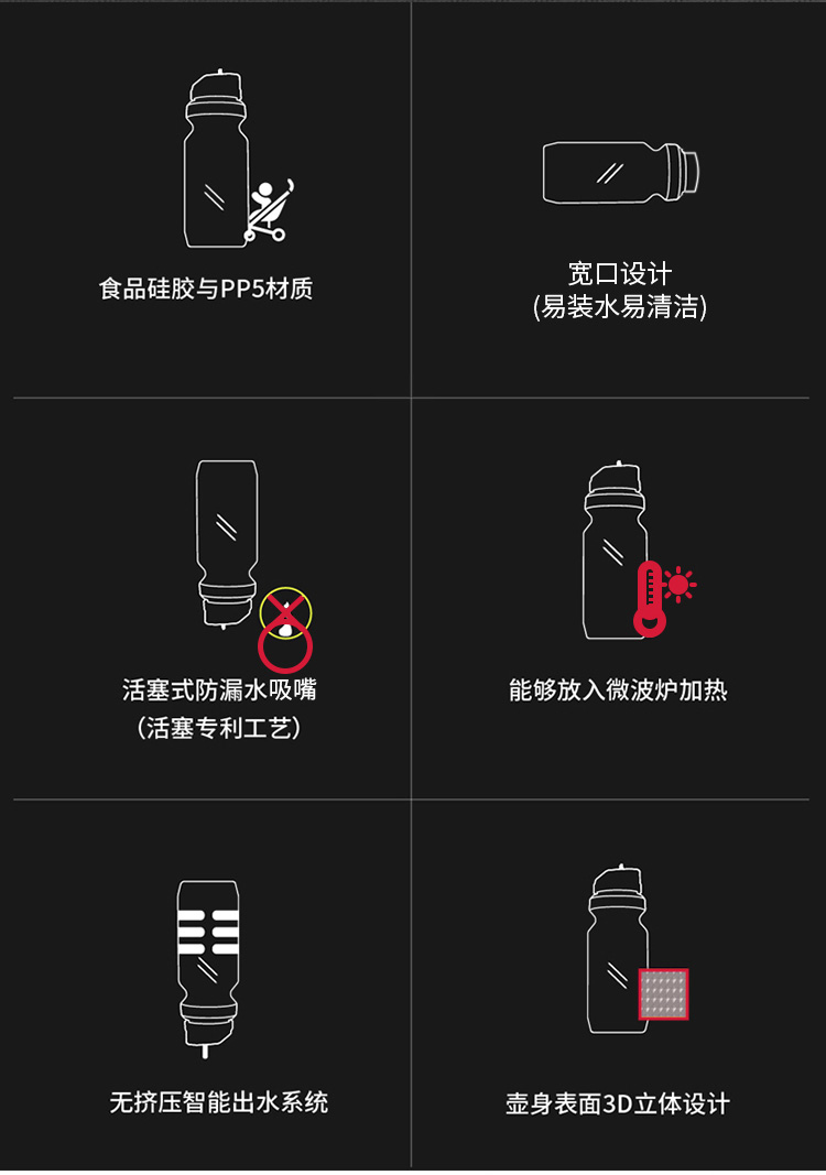 簡(jiǎn)介:智能出水,無(wú)需擠壓,防漏水吸嘴,耐熱易清潔,3D防滑瓶身等