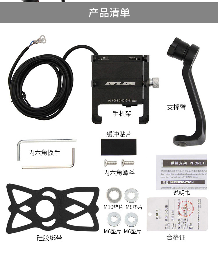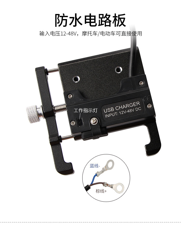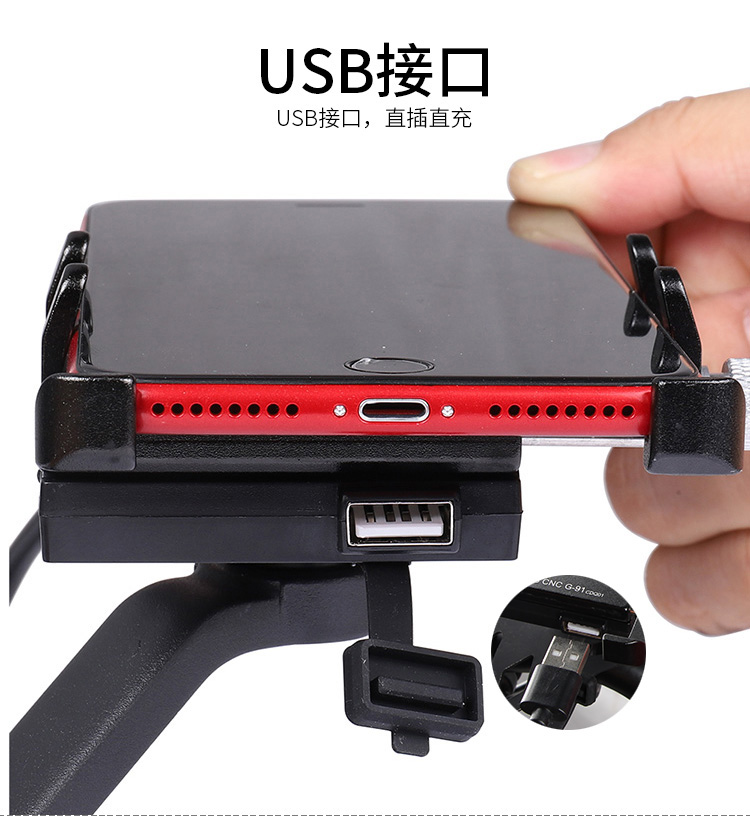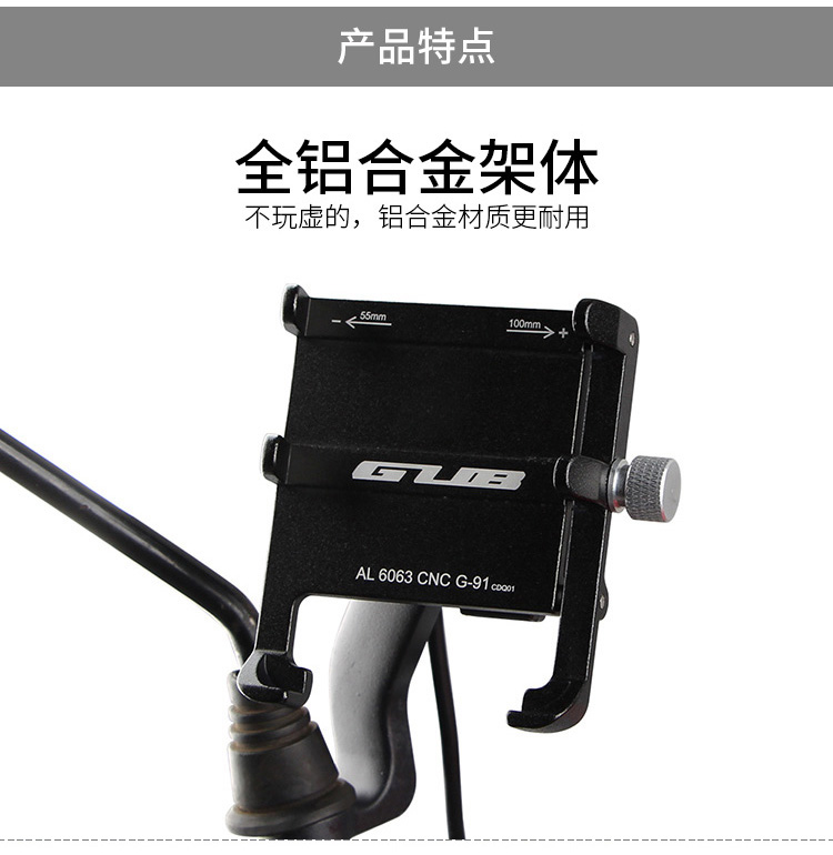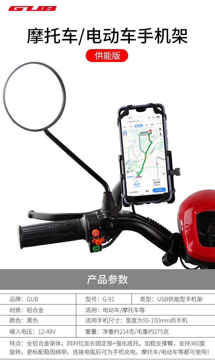特點:全鋁合金架體,四對位加長固定部+強化底托,加粗支撐臂,支持360度旋轉,更標配穩(wěn)固綁帶,連接電瓶后可為手機充電,摩托車/電動車等都可使用!