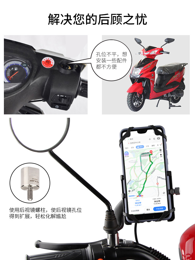 簡介:此配件為后視鏡輔助配件,采用不銹鋼材質(zhì),耐用不生銹,用于摩托車/電動車后視鏡孔位的擴展,起到墊高或更好適配的作用。