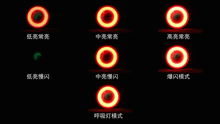 燈光模式:常亮、閃亮、爆閃、呼吸