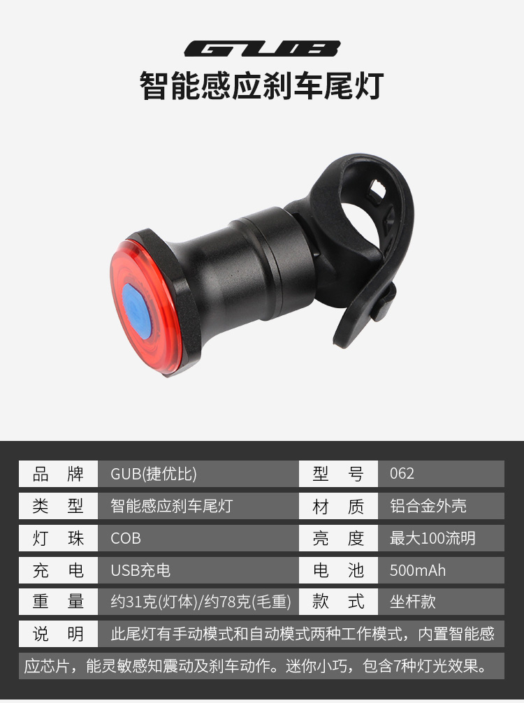 GUB 062 智能感應(yīng)剎車(chē)尾燈(座桿款)