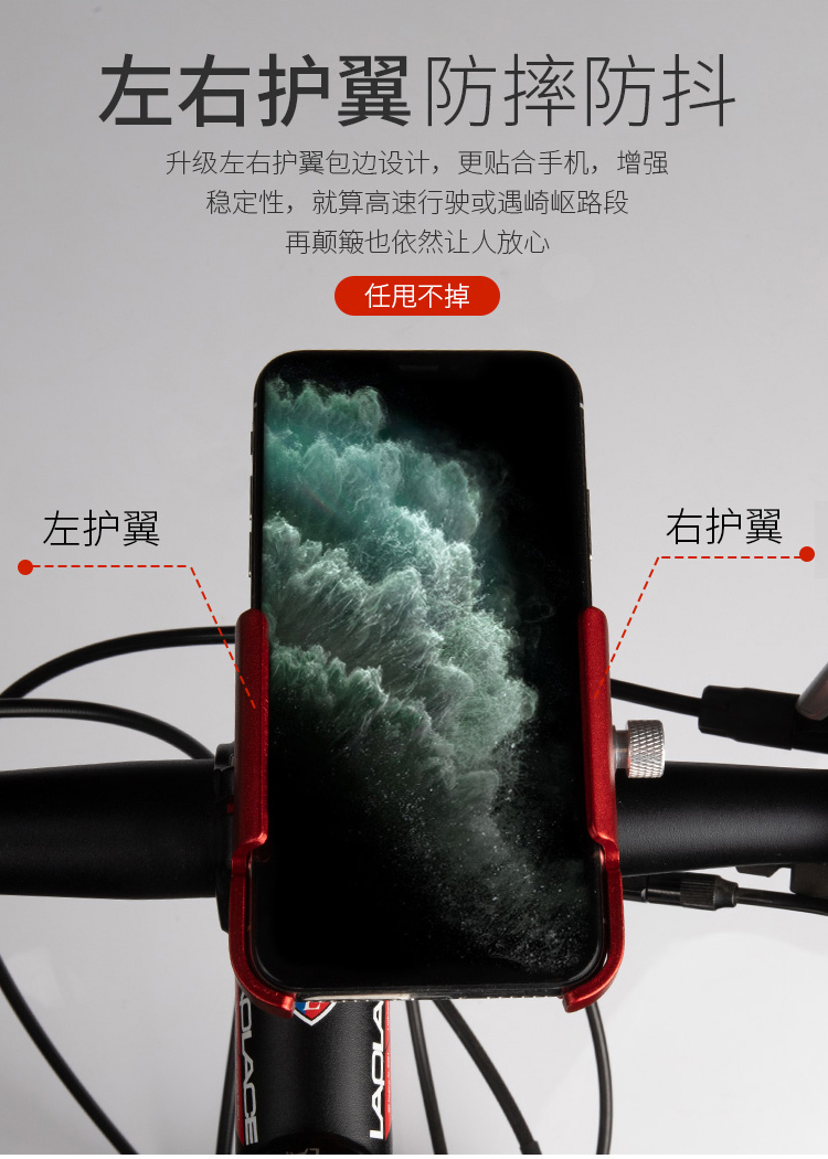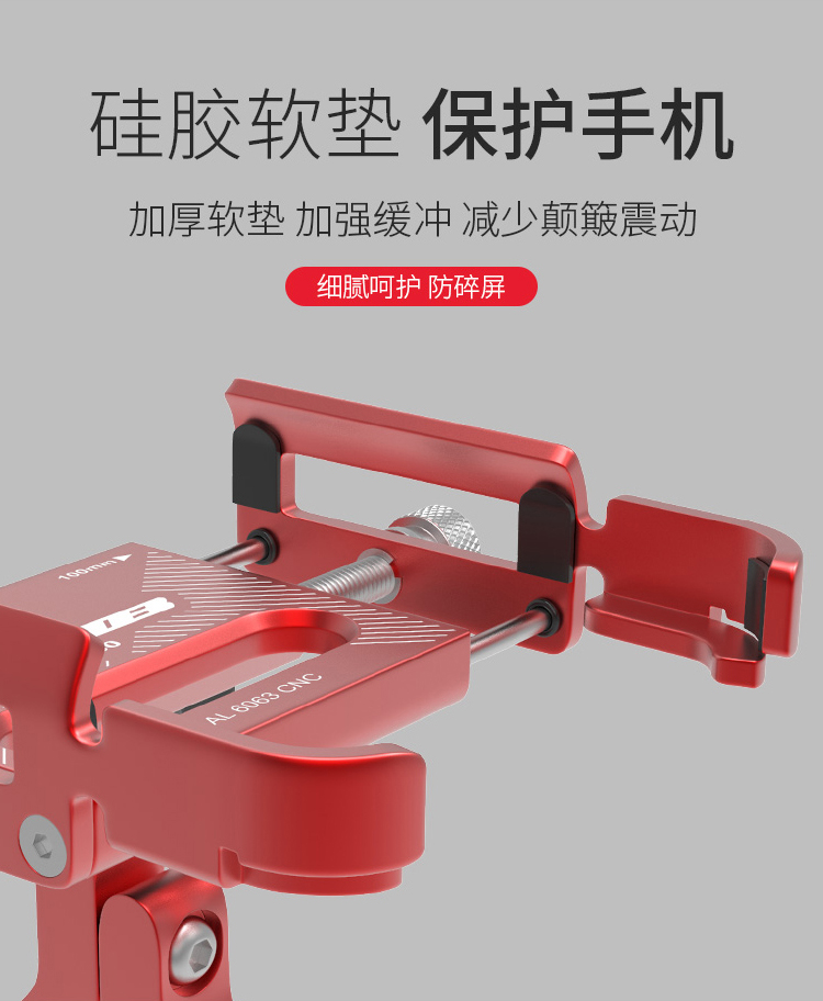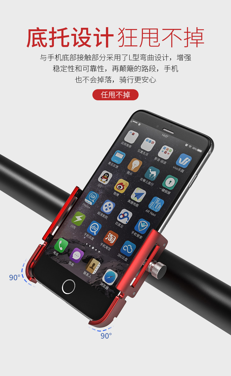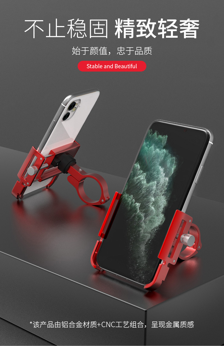 特點(diǎn):鋁合金架體,高兼容性不挑手機(jī)型號,自行車、電動車等都可使用!