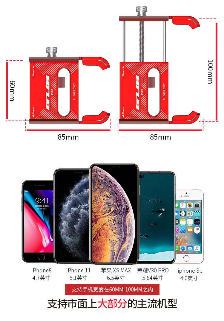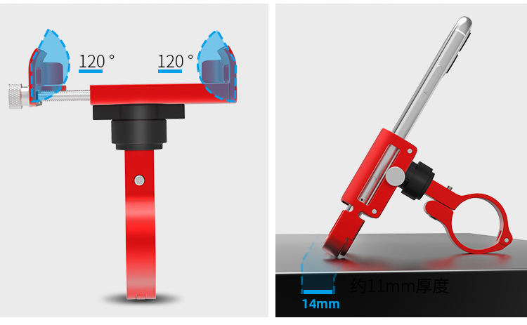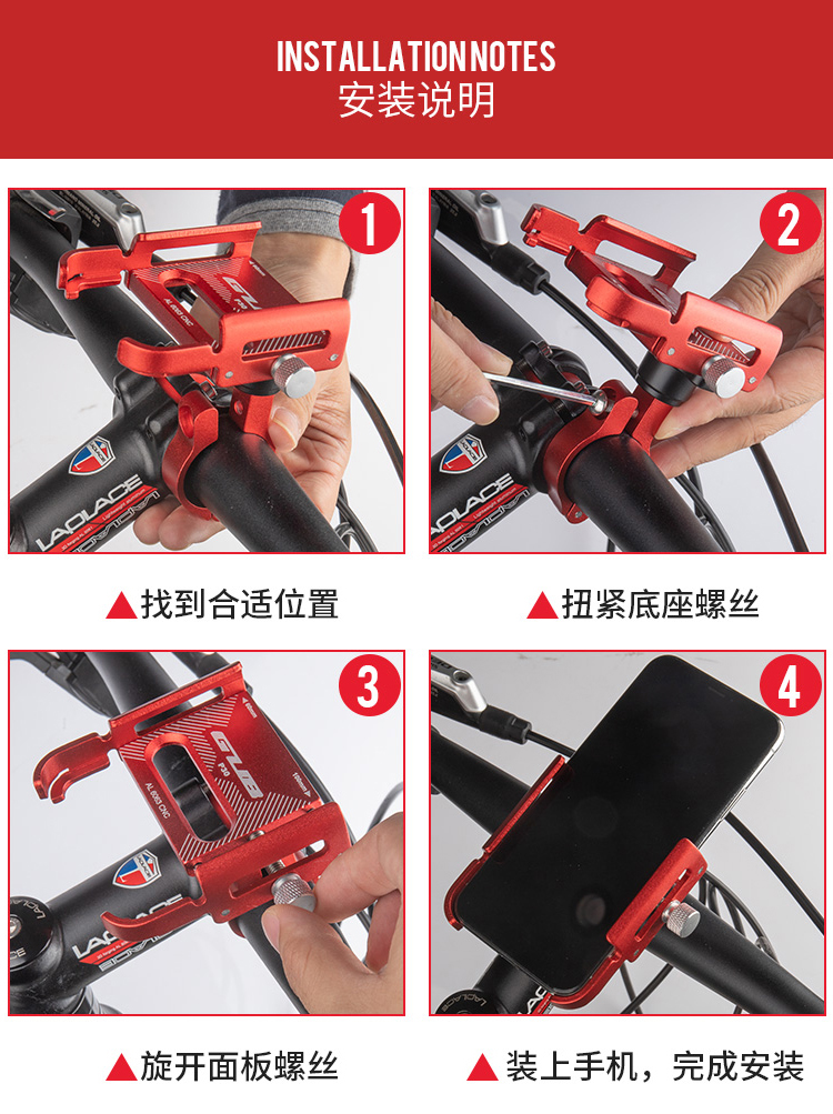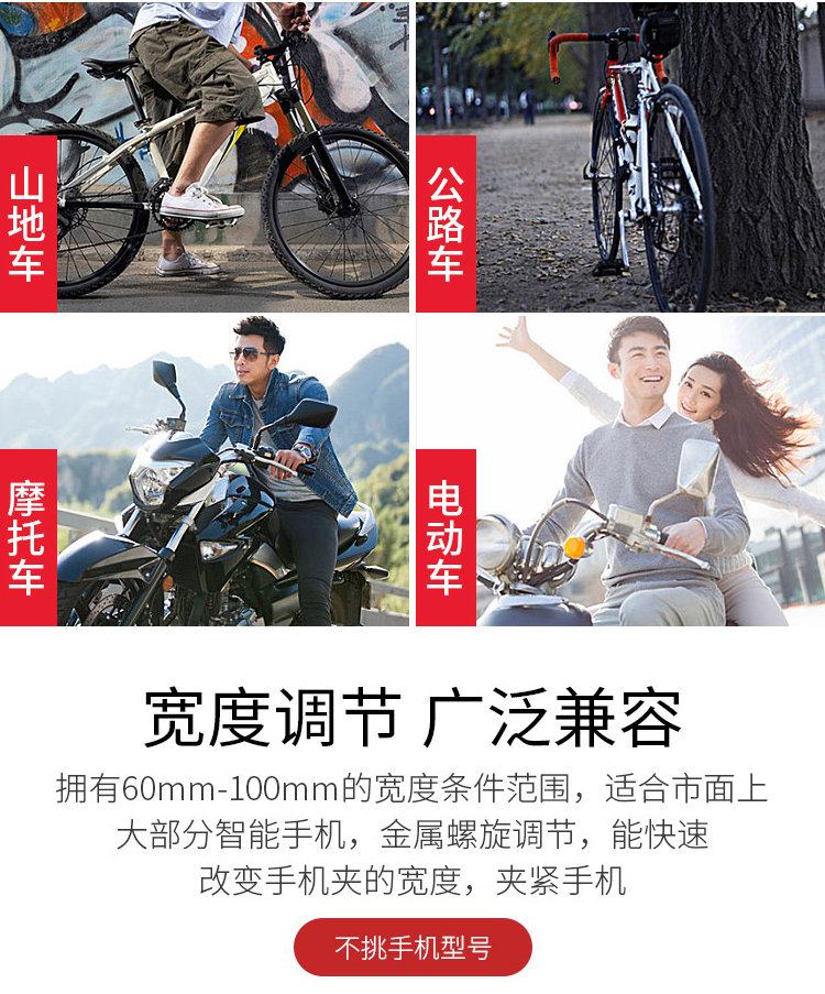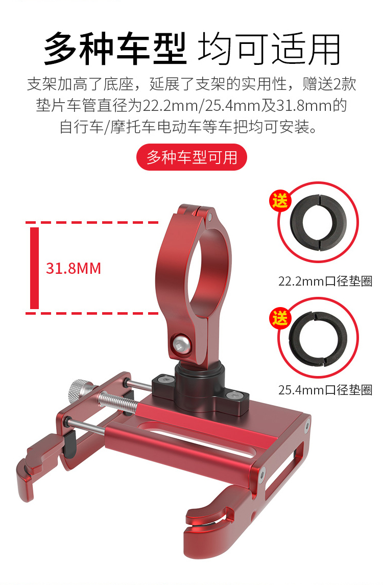 特點(diǎn):鋁合金架體,高兼容性不挑手機(jī)型號,自行車、電動車等都可使用!