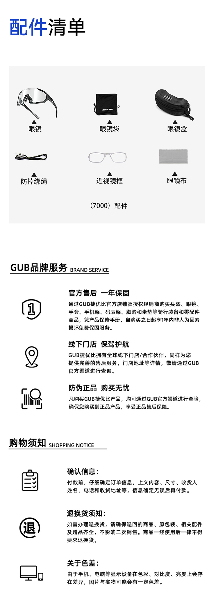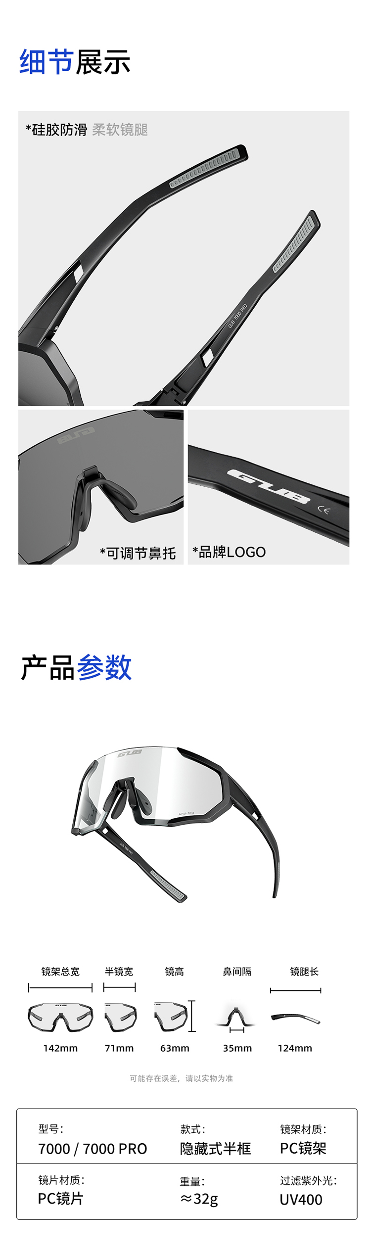 名稱:GUB 7000 騎行眼鏡