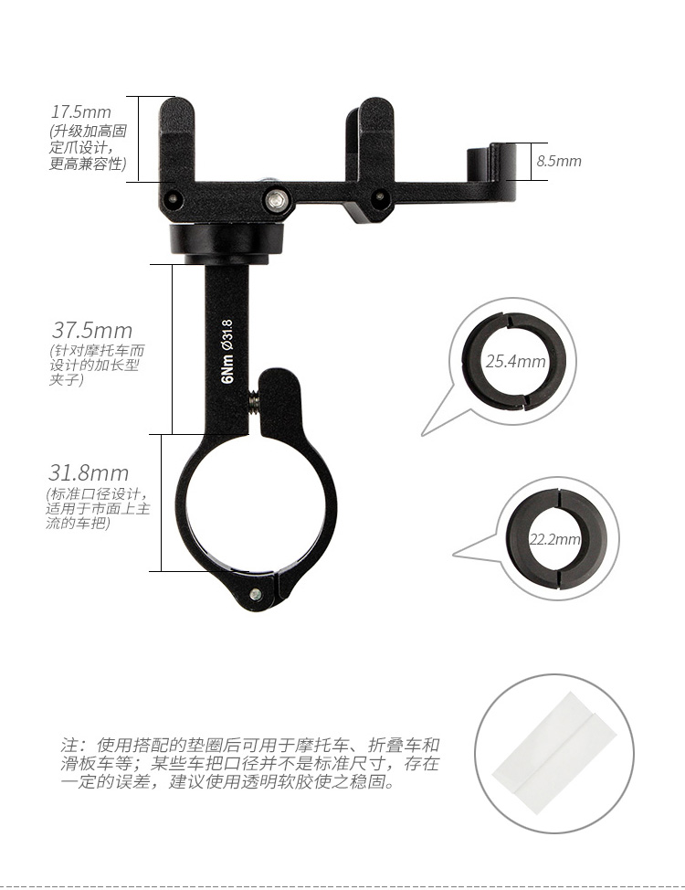 功能:加長固定部,可應(yīng)付加裝特厚手機(jī)殼的手機(jī),標(biāo)配防盜螺絲和專用扳手,支持免工具平面360度旋轉(zhuǎn)。