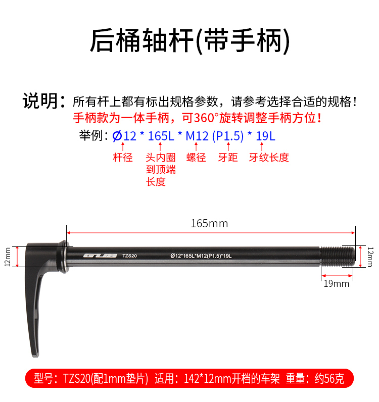 說(shuō)明:請(qǐng)根據(jù)車(chē)架尺寸選擇合適的桶軸桿!
