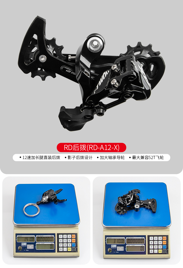 后撥:12速加長腿直裝后撥,影子后撥設(shè)計,加大軸承導(dǎo)輪,最大兼容52T飛輪