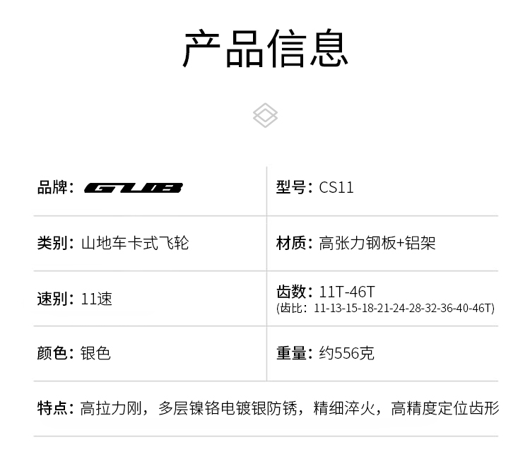 齒比:11-13-15-18-21-24-28-32-36-40-46T