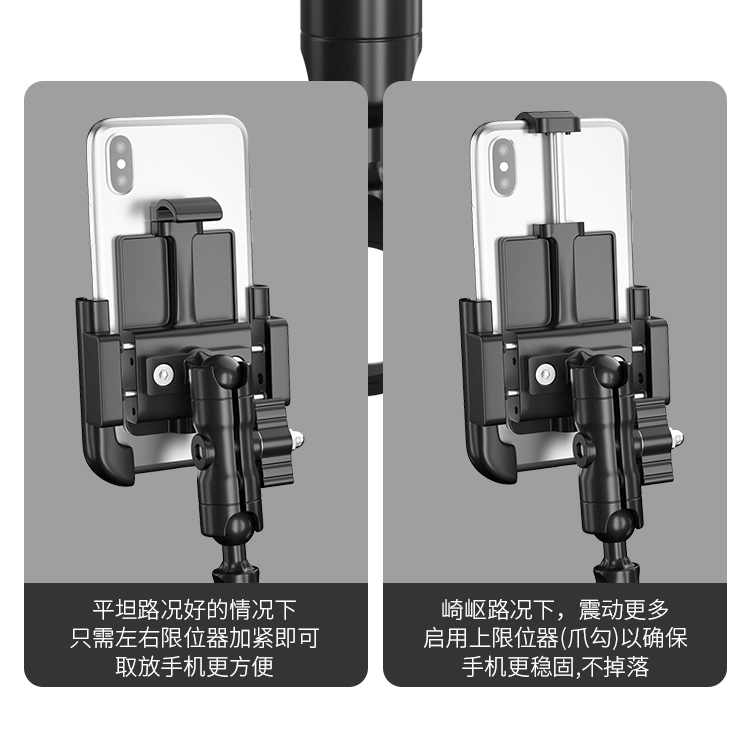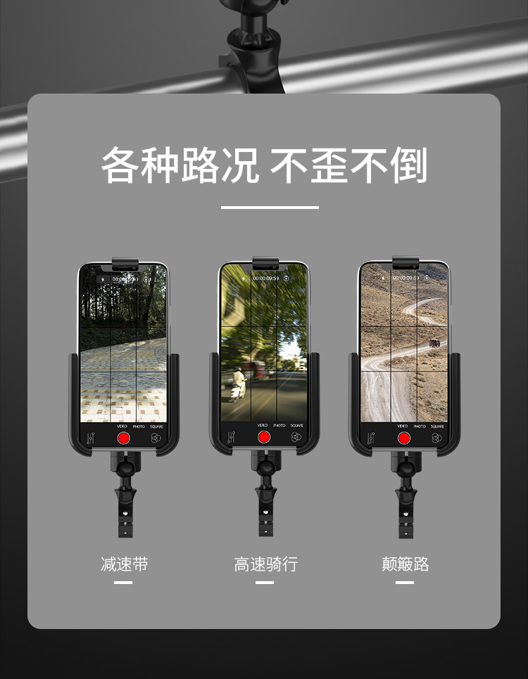 特點(diǎn):鋁合金架體,高兼容性不挑手機(jī)型號,摩托車、電動車等都可使用,四面環(huán)繞固定,夾手機(jī)更牢固,快速取放省時省力,雙萬向球旋轉(zhuǎn)系統(tǒng),滿足多場景使用需求。