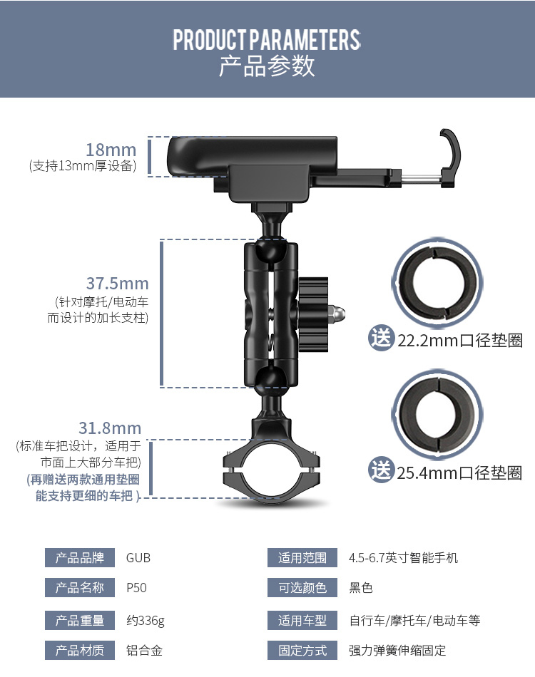 重量:約336克(單手機(jī)架)/約430克(毛重)