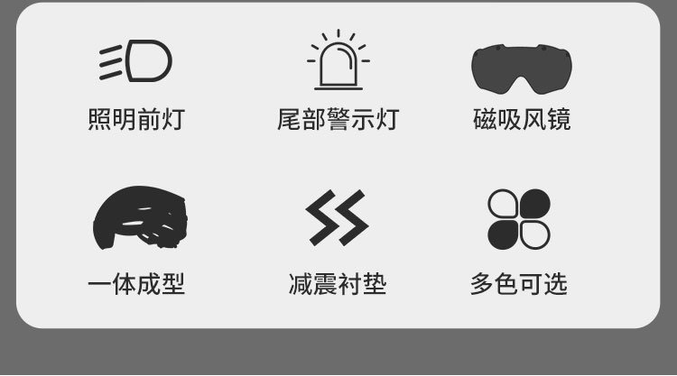 特點(diǎn):免安裝磁鐵吸附風(fēng)鏡設(shè)計(jì),標(biāo)配前燈及后尾燈,做工精致,優(yōu)良品質(zhì)!