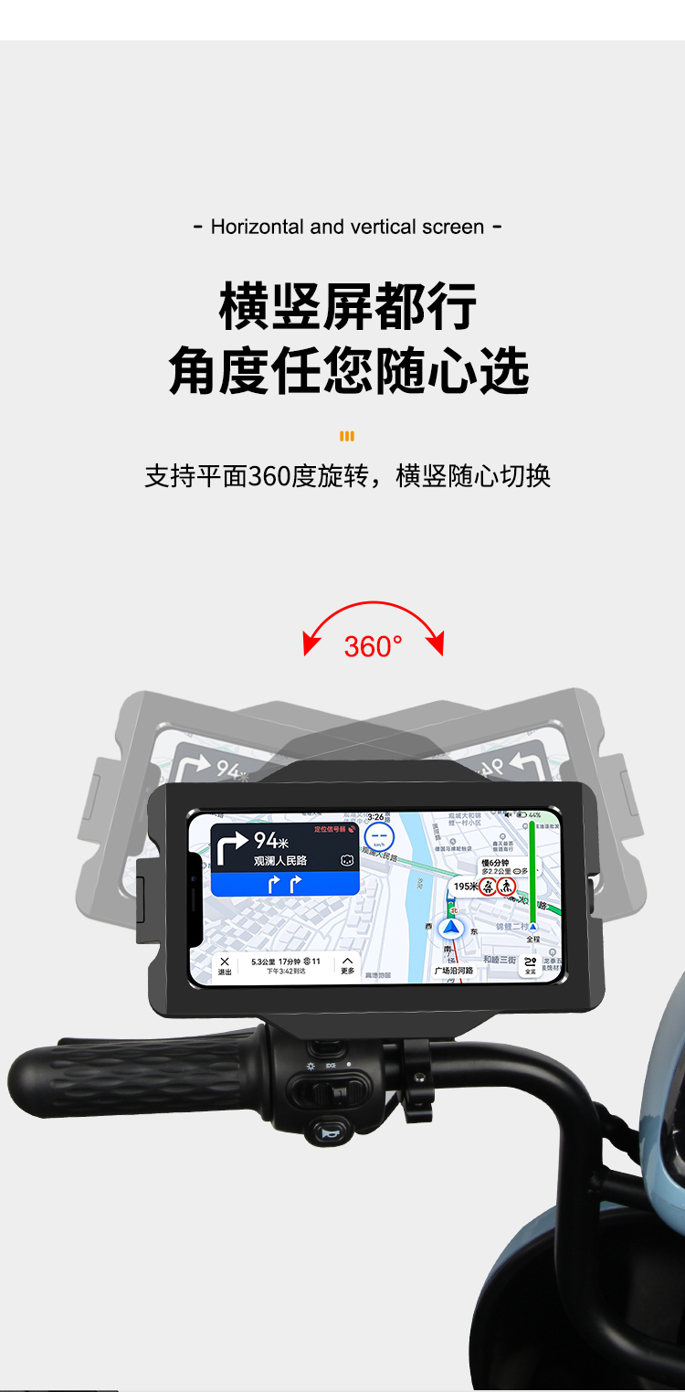特點(diǎn):鋁合金支撐架,全封閉手機(jī)盒,防雨無憂,高兼容性不挑手機(jī)型號,摩托車、電動車等都可使用,滿足多場景使用需求。