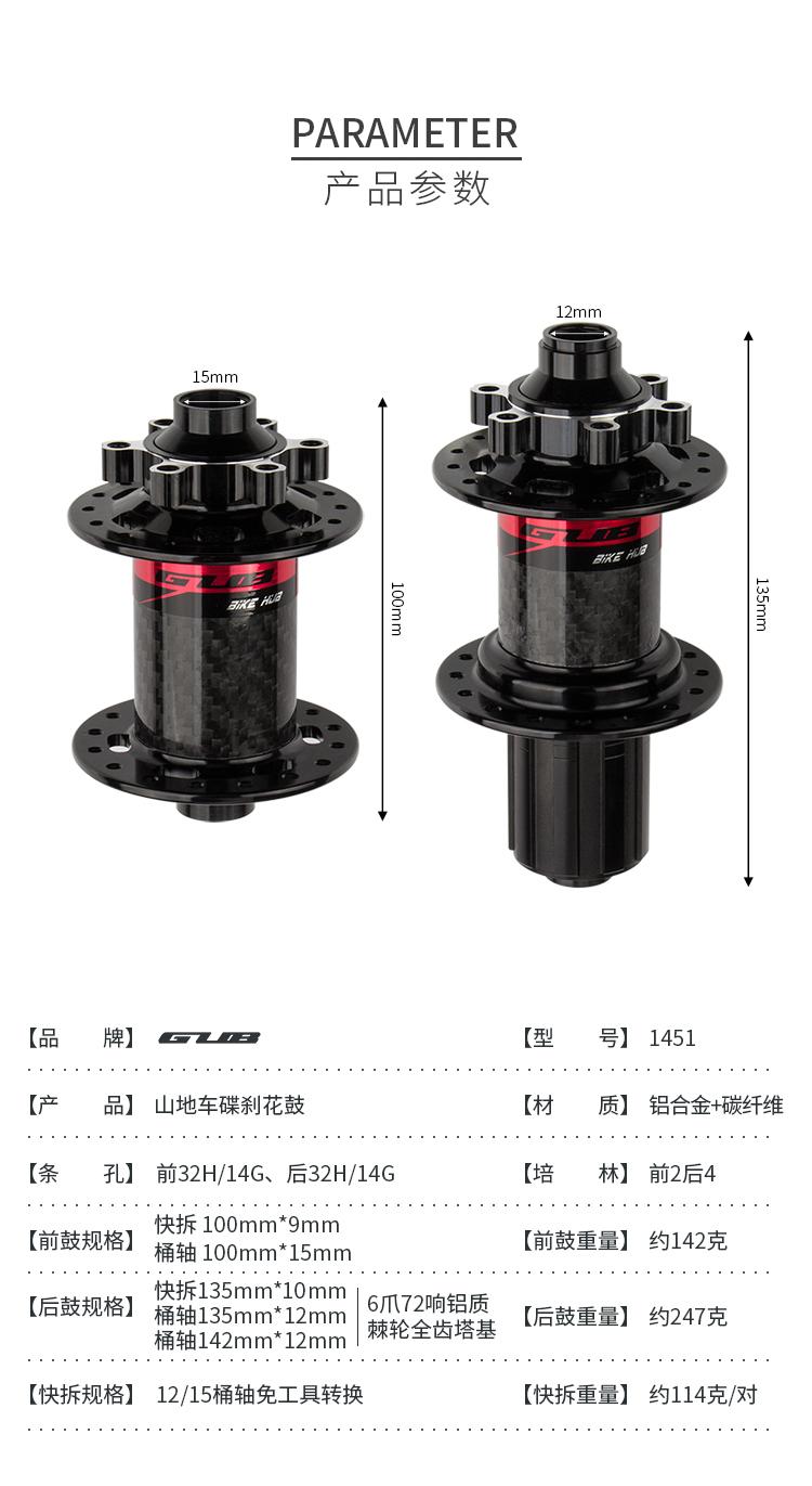 產品:GUB 1451 碳纖維碟剎花鼓