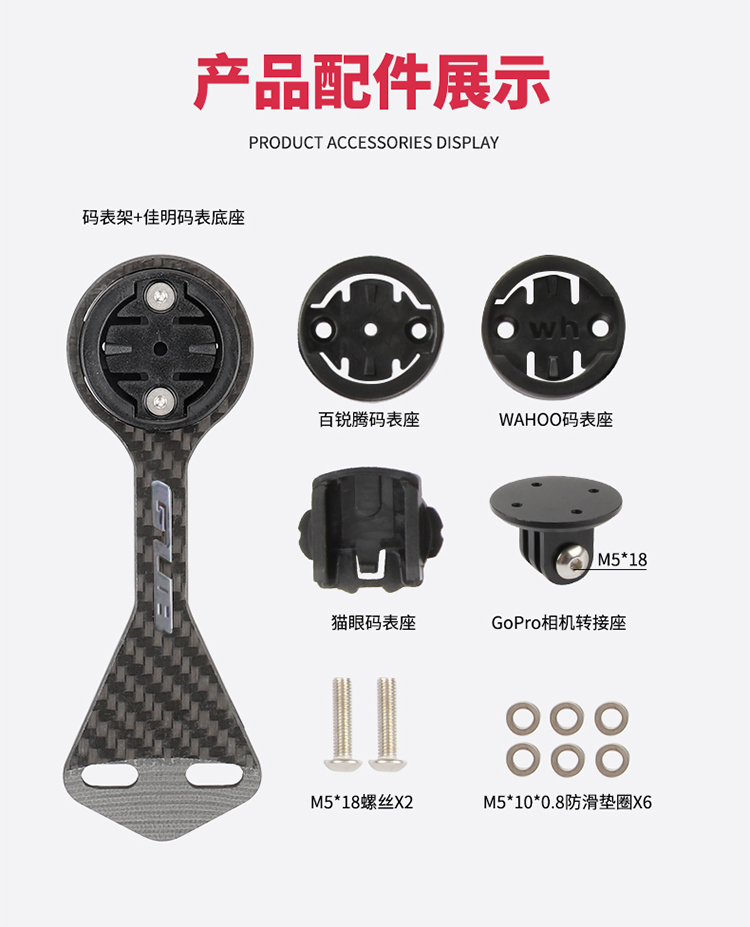 配置:配運(yùn)動相機(jī)轉(zhuǎn)接座,wahoo、佳明、百銳騰和貓眼碼表接座