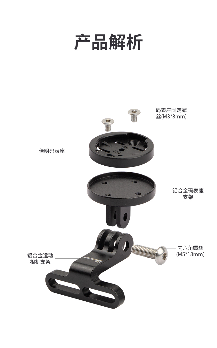 特點(diǎn):鋁合金材質(zhì)堅(jiān)固耐用,體積小巧、居中安裝不占車頭空間,標(biāo)準(zhǔn)運(yùn)動(dòng)相機(jī)接口,可接多種兼容此接口的配件,如碼表座,運(yùn)動(dòng)相機(jī)和車前燈等