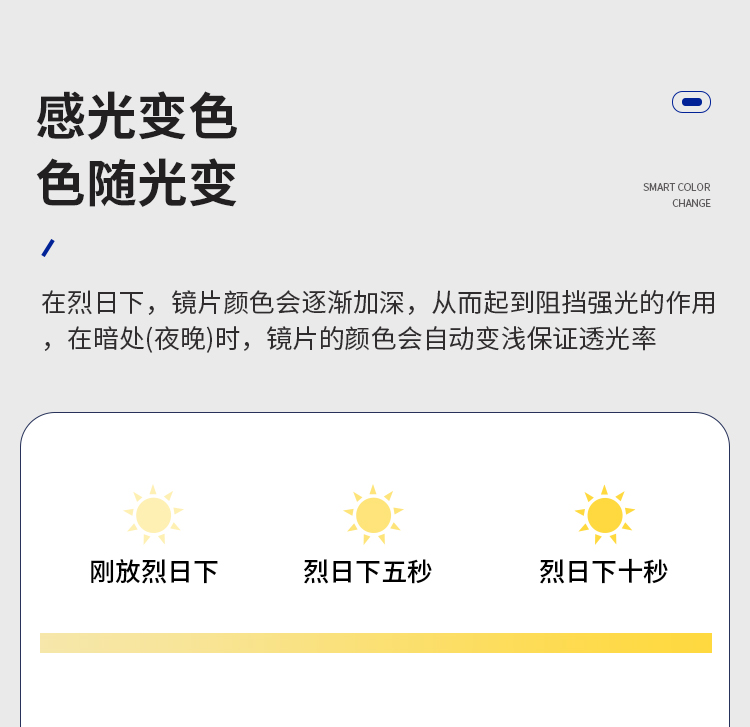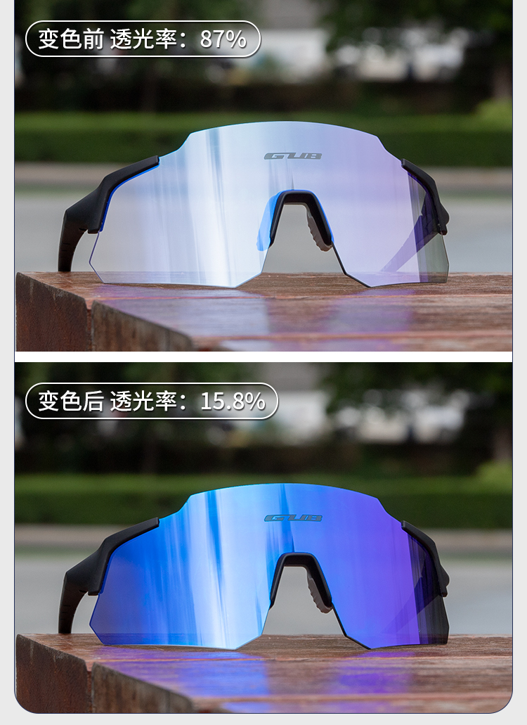 顏色:啞黑框腳/全面藍(lán)變色片、啞黑框腳/全面紫變色片、亮白框腳/全面藍(lán)變色片、亮白框腳/全面紫變色片