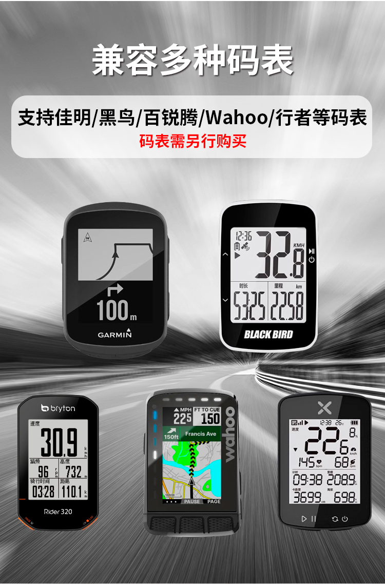 支持碼表:GARMIN全系列(兼用行者/黑鳥(niǎo)/iGPS等),貓眼全系列,百銳騰系列,wahoo系列
