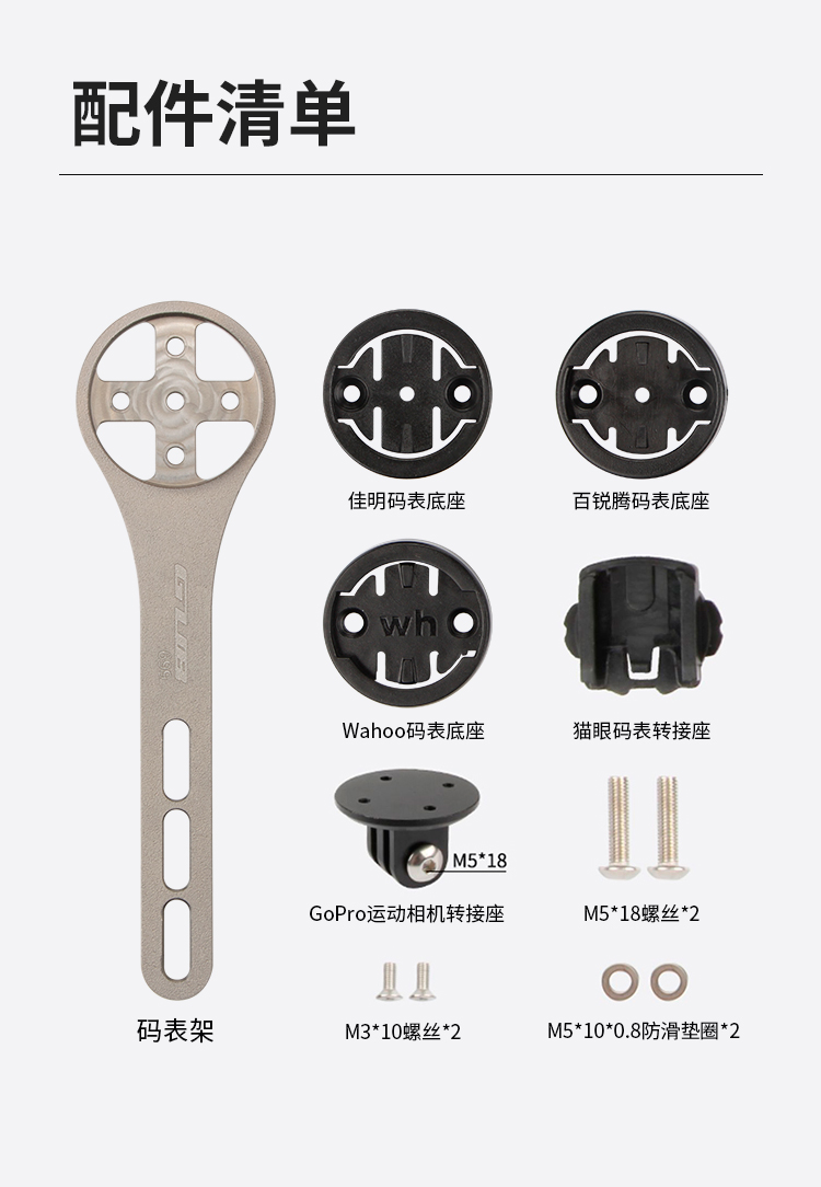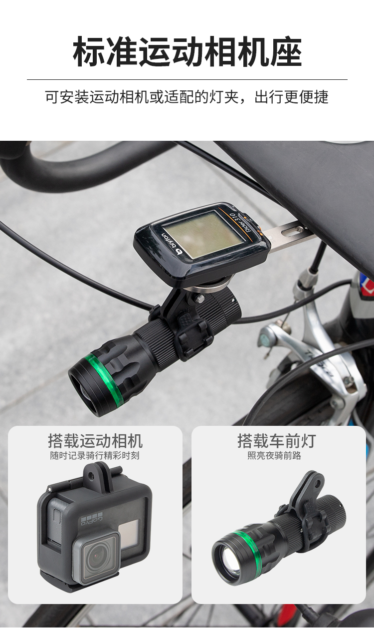 配置:配運(yùn)動(dòng)相機(jī)轉(zhuǎn)接座,wahoo、佳明、百銳騰和貓眼碼表接座