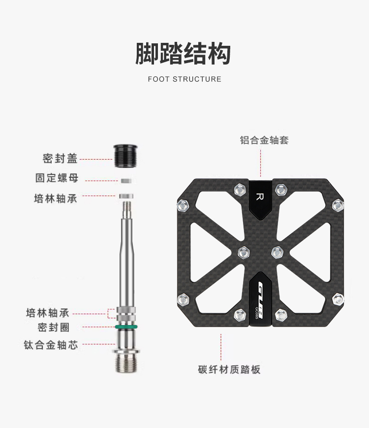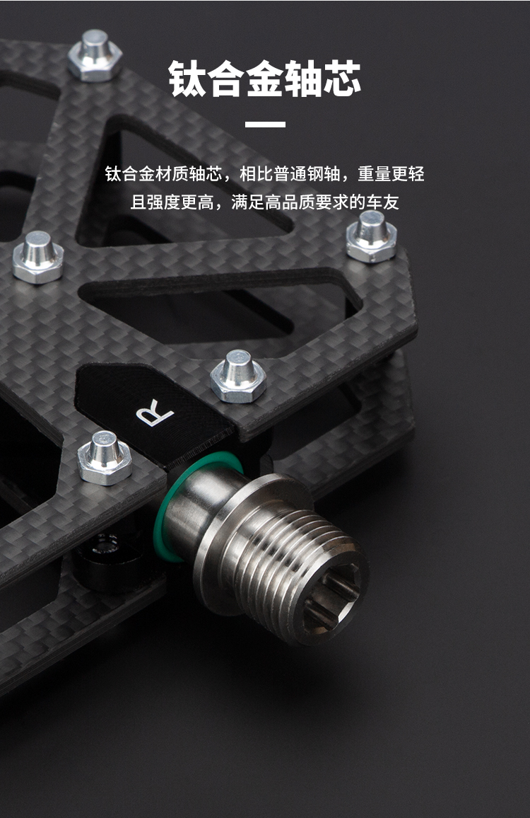 材質(zhì):碳纖維踏板+鋁合金軸套+鈦合金軸芯