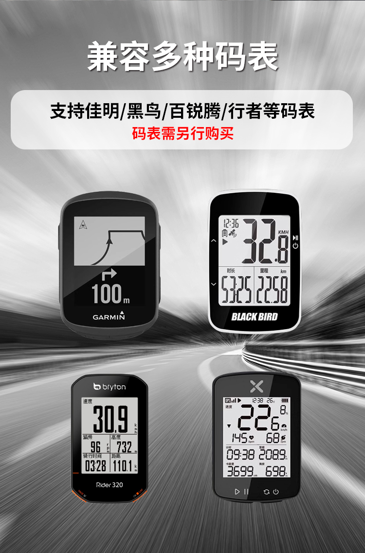 支持碼表:GARMIN全系列(兼用行者/黑鳥/iGPS等),貓眼全系列,百銳騰系列