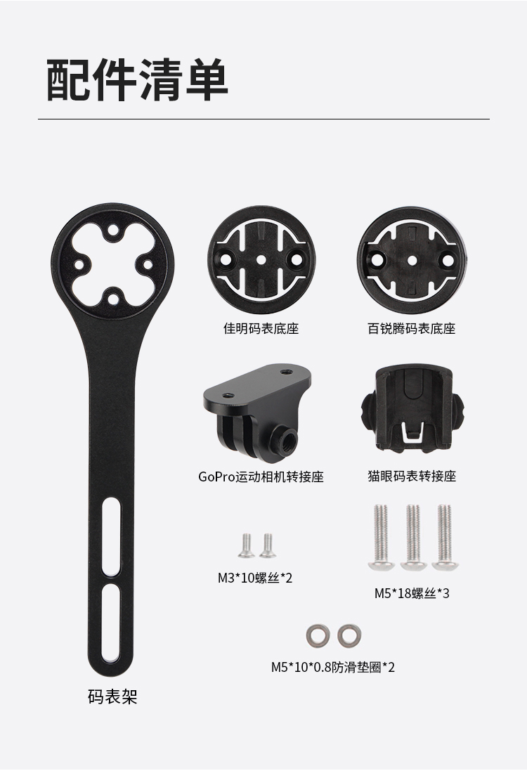 配置:配運(yùn)動(dòng)相機(jī)轉(zhuǎn)接座,佳明、百銳騰和貓眼碼表接座