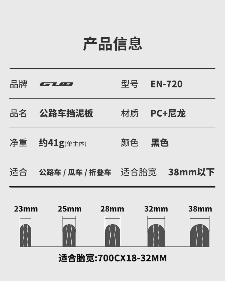 產(chǎn)品:GUB EN-720 公路車擋泥板