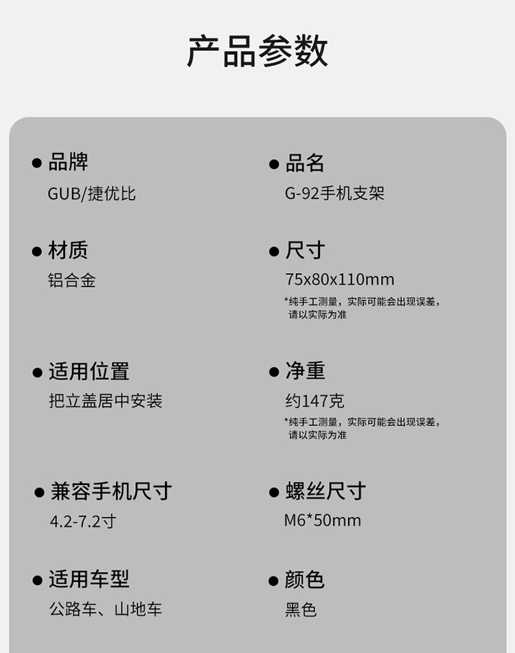 重量:約147克(單手機(jī)架)/約182克(毛重)