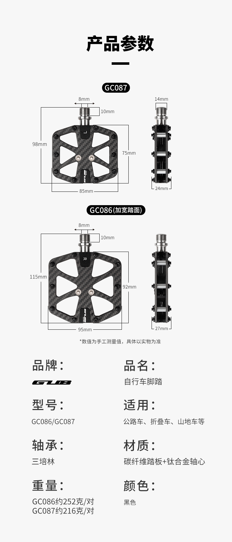 產(chǎn)品:GUB GC086 GC087 碳纖維三培林腳踏