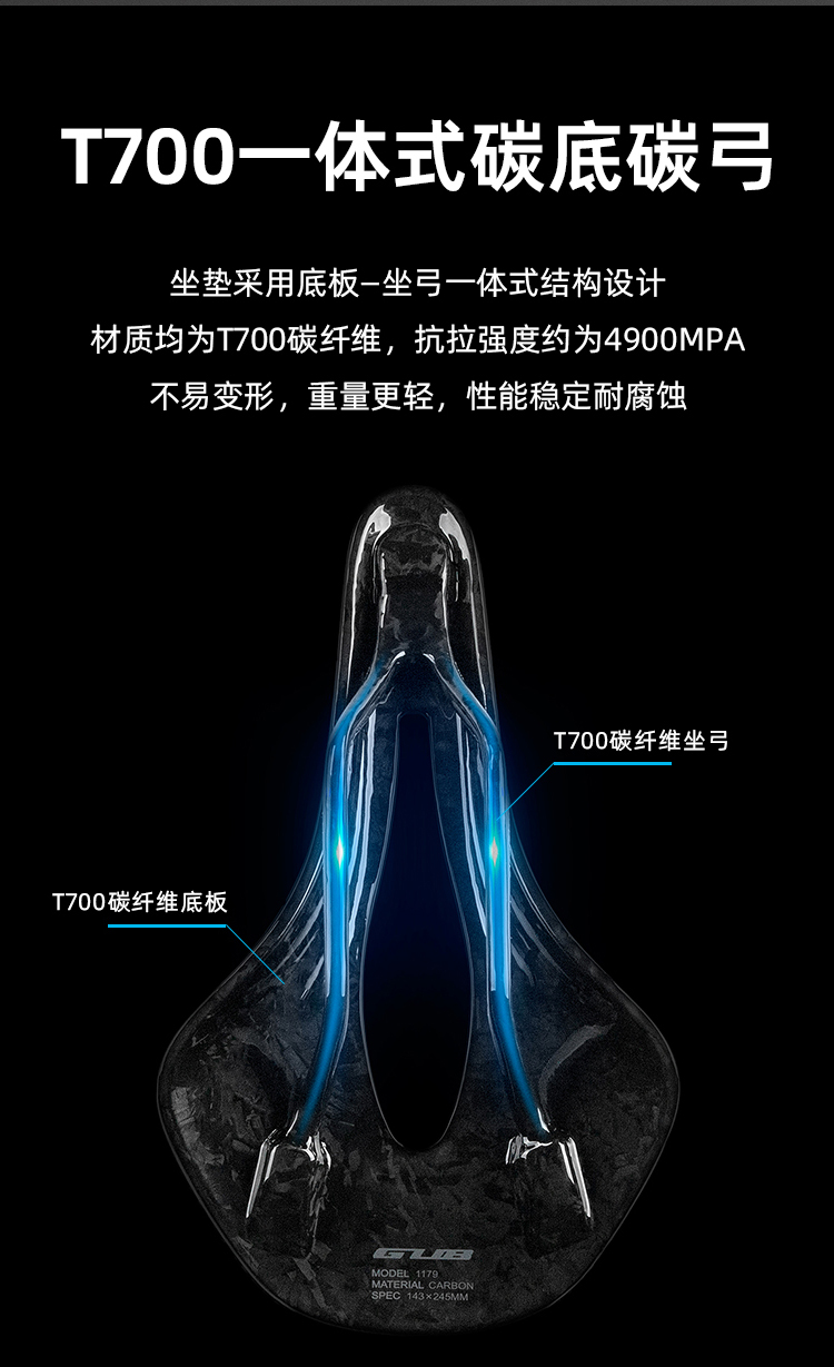 材質(zhì):TPU填充物、T700碳纖底板+碳纖弓